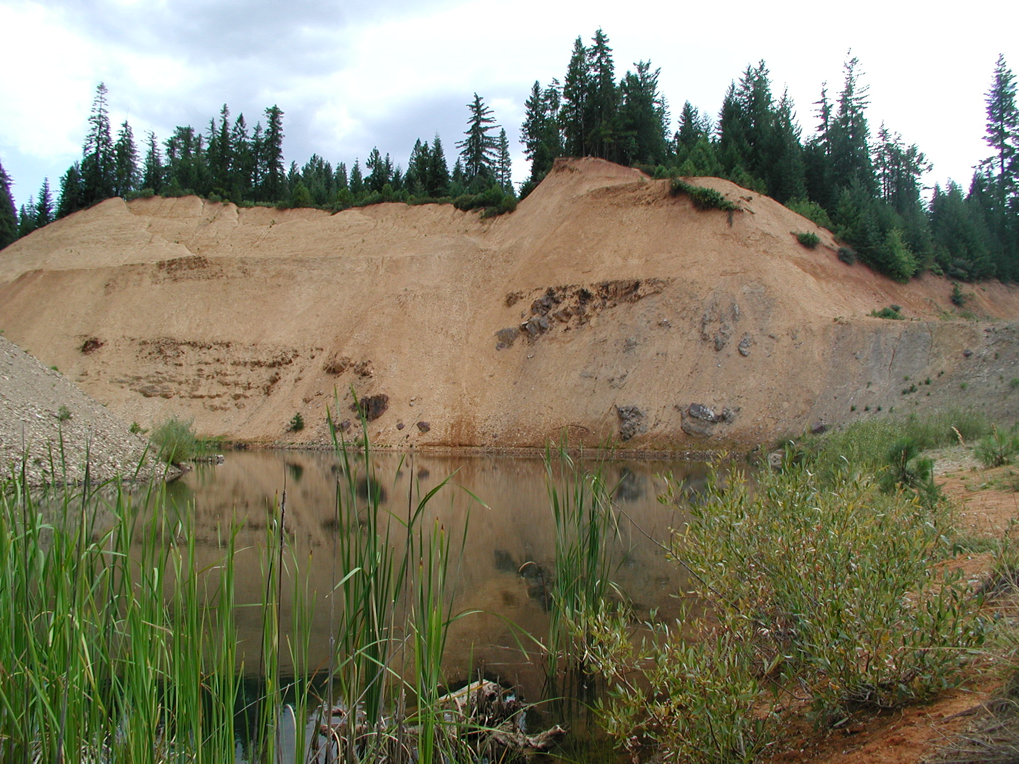 Yellowish Pliocene colluvium with basalt clasts exposed near pond southeast of Canyondam.
