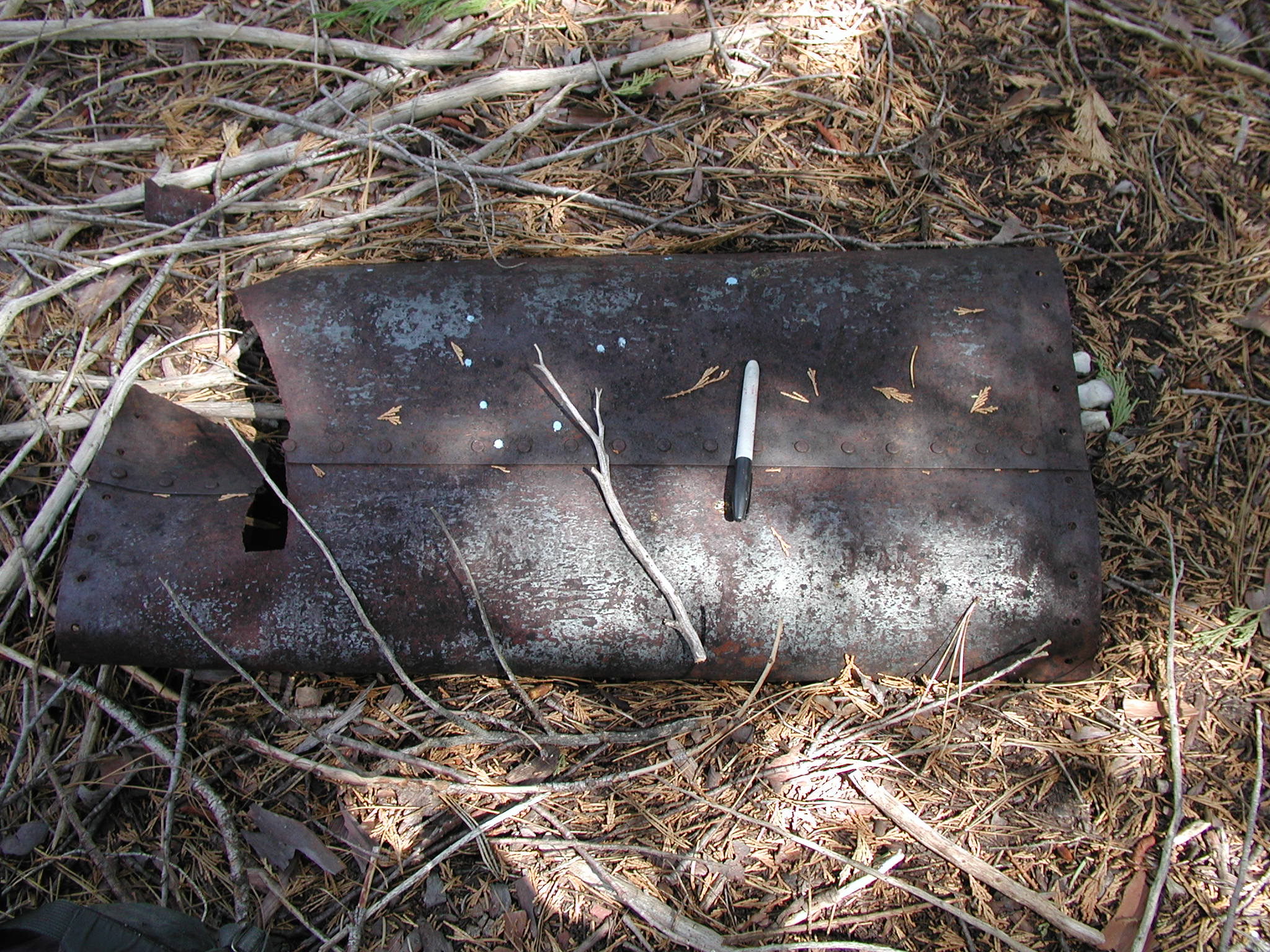 Flattened riveted steel pipe, Upper Dutch Diggings near La Porte.