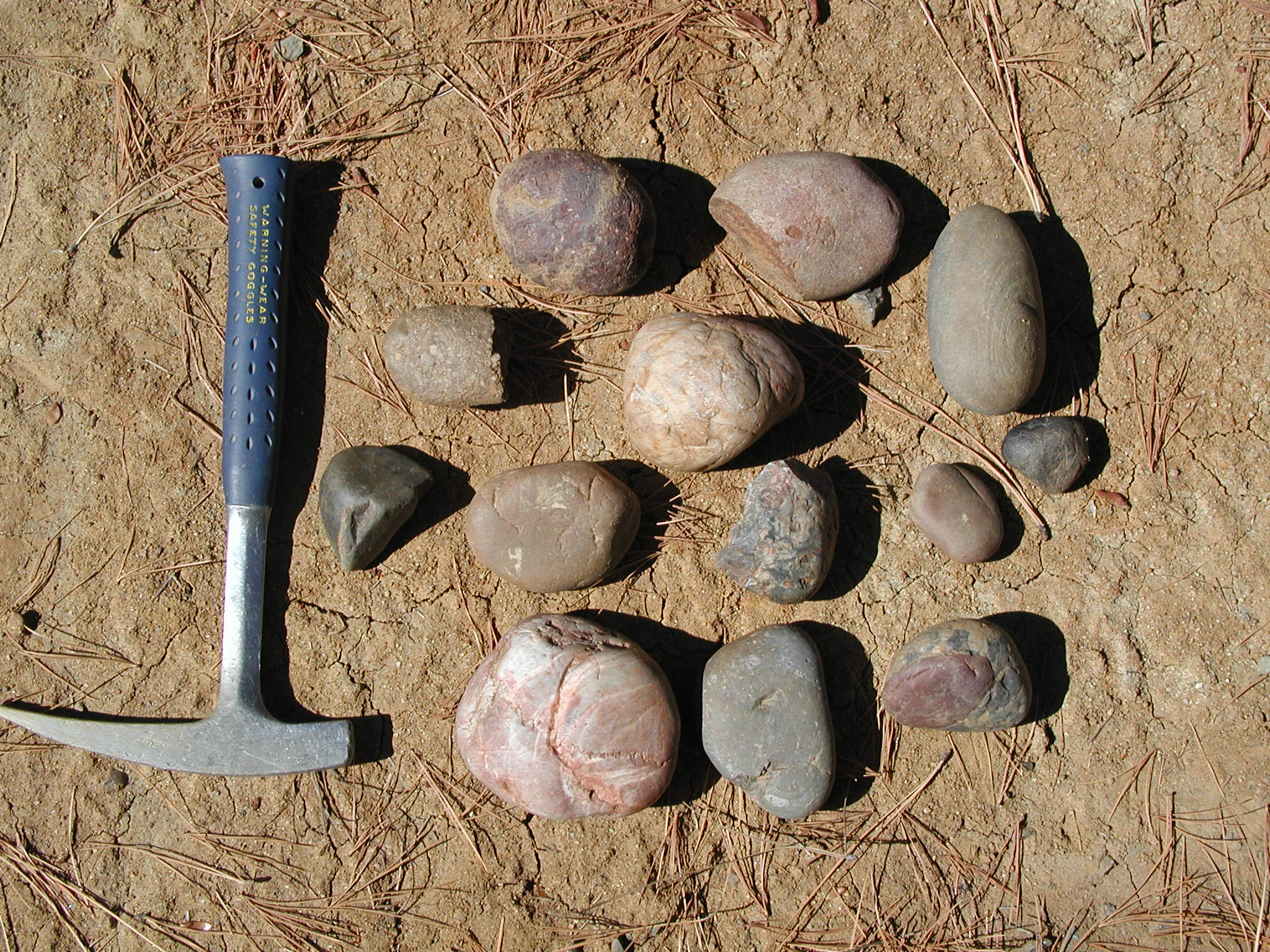 Some clasts (chert, quartzite, schorl) from float near an outcrop of arkosic sandstone, East Branch Lights Creek.