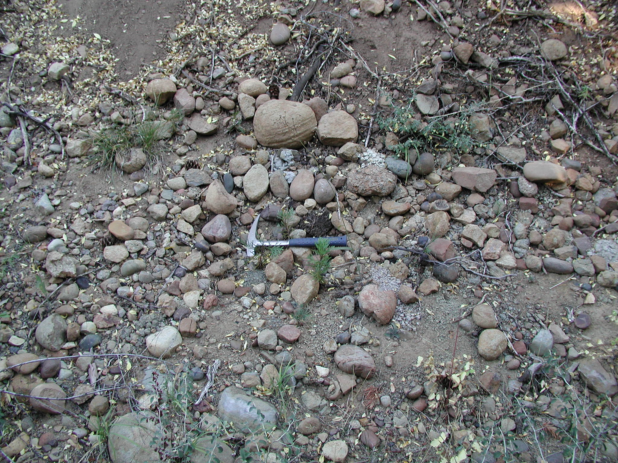 Float (near outcrop) of cobbles of Tertiary andesite, basalt, and rare rhyolitic ash-flow tuff. East Branch of Lights Creek area.