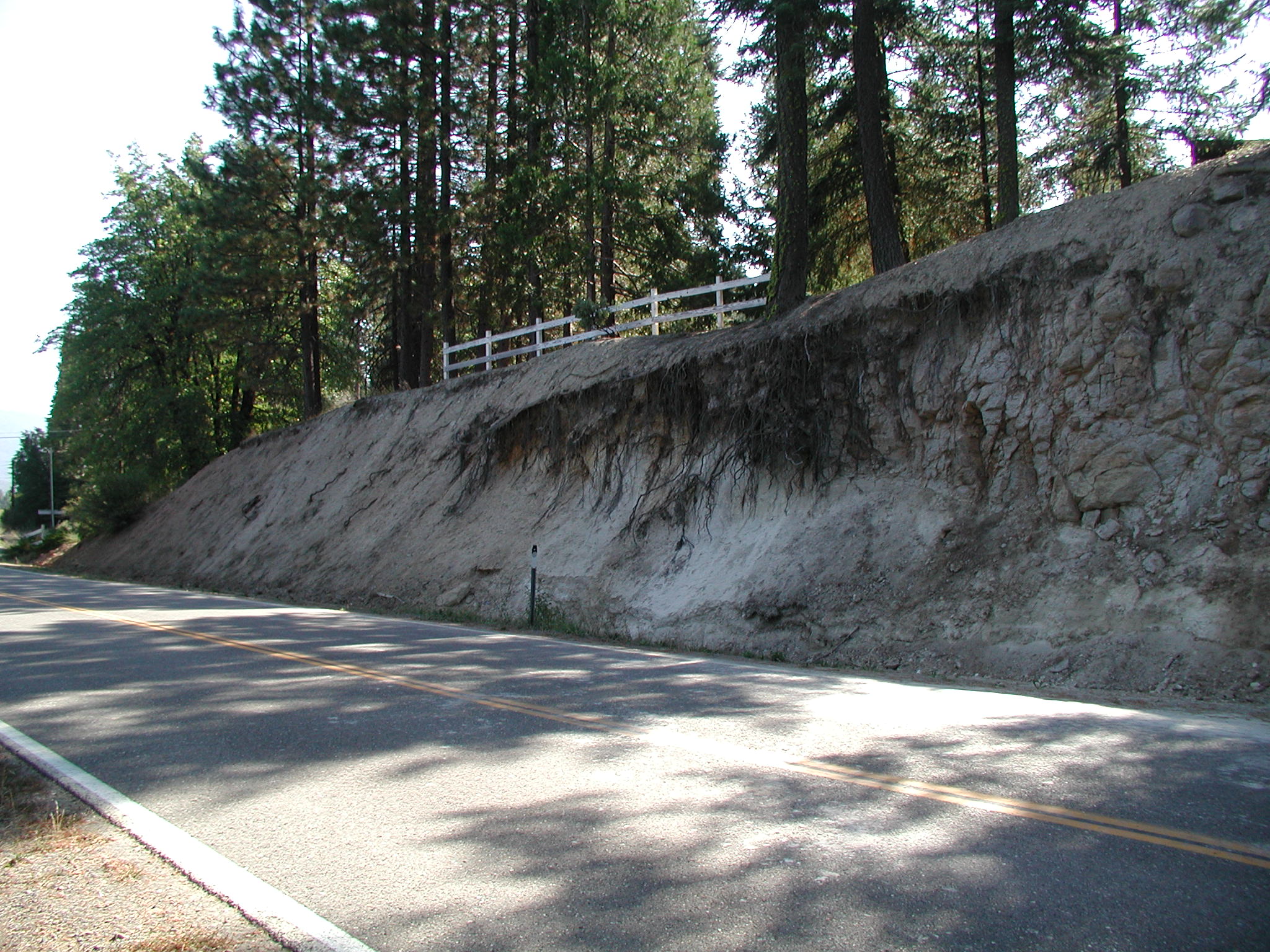 Ash-flow tuff from the Yana volcanic center(?) lying on yellow colluvium just south of Greenville.