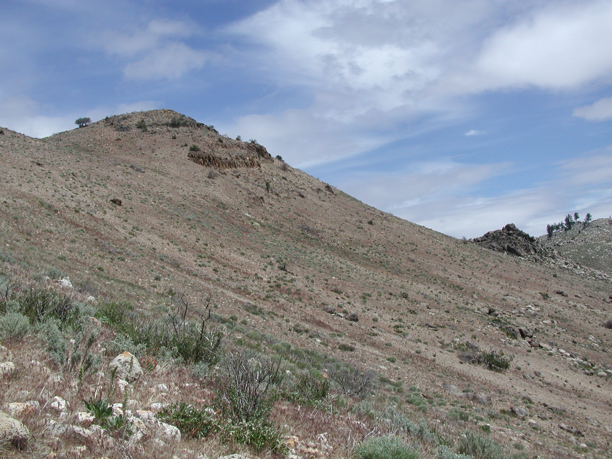 Two cooling units (left) lying on granodiorite (right) northeast of Chilcoot.