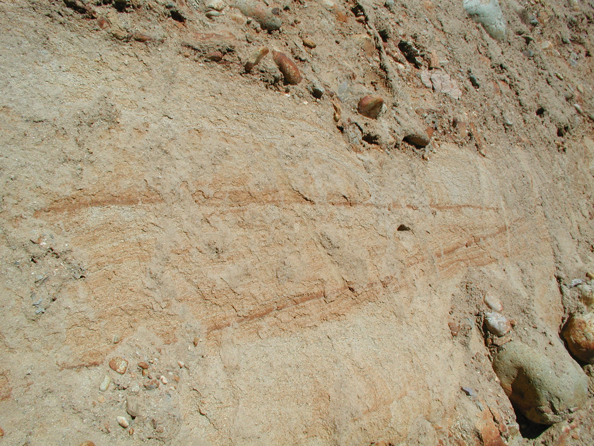 Cross bedded sandstone underlying gravel at the Cascade Mine